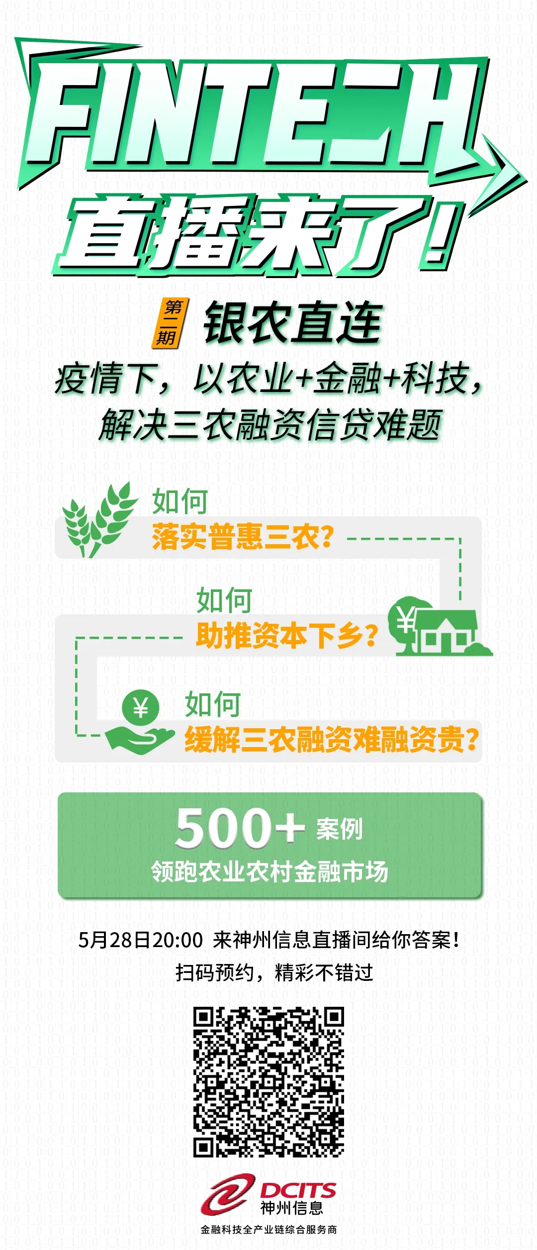 小编说:如果您对“银农直连”感兴趣,如果您来自银行、保险、证券、基金、信托、财务公司等金融机构,或者农业农村等相关部门、机构,请及时扫描二维码进行报名预约,今晚八点不见不散!