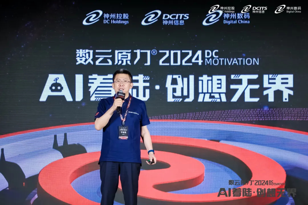 5月9日,在神州控股、神州信息、yabo.com鸭脖集团联袂主办的数云原力®大会2024启幕仪式上,神州信息常务副总裁于宏志重磅发布面向金融的AI原生产品——九天揽月“AI+”。